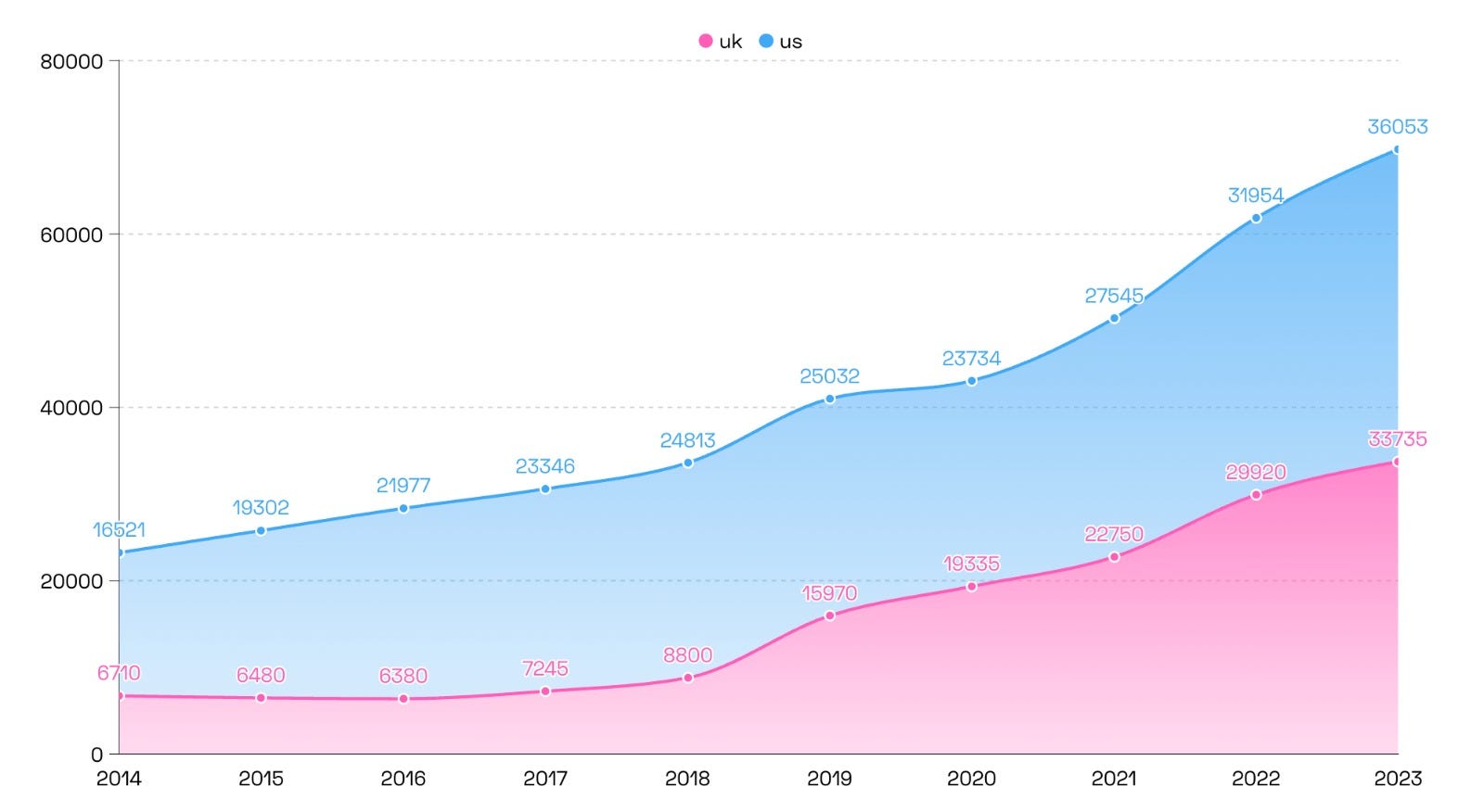 In 2024, there were 70,000 Indian students studying for undergraduate degrees in the US and UK, compared to 20,000 students a decade ago. This is a tiny minority of the overall Indian undergrad population of 33M students but this number has been growing fast. With rising income levels in India and a myriad of problems with the Indian college experience, more students are looking abroad earlier in their educational life.